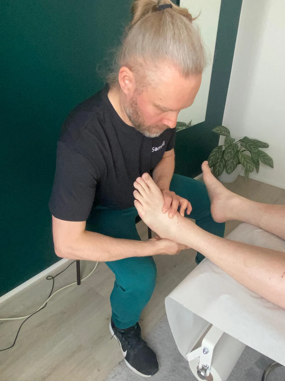 Meiltä et löydä hoitolaitteita tai kylmäpusseja. Sen sijaan saat kuuntelevat korvat, asiantuntevat kädet, havainnoivat silmät – ja tarvittaessa myös levypainot.